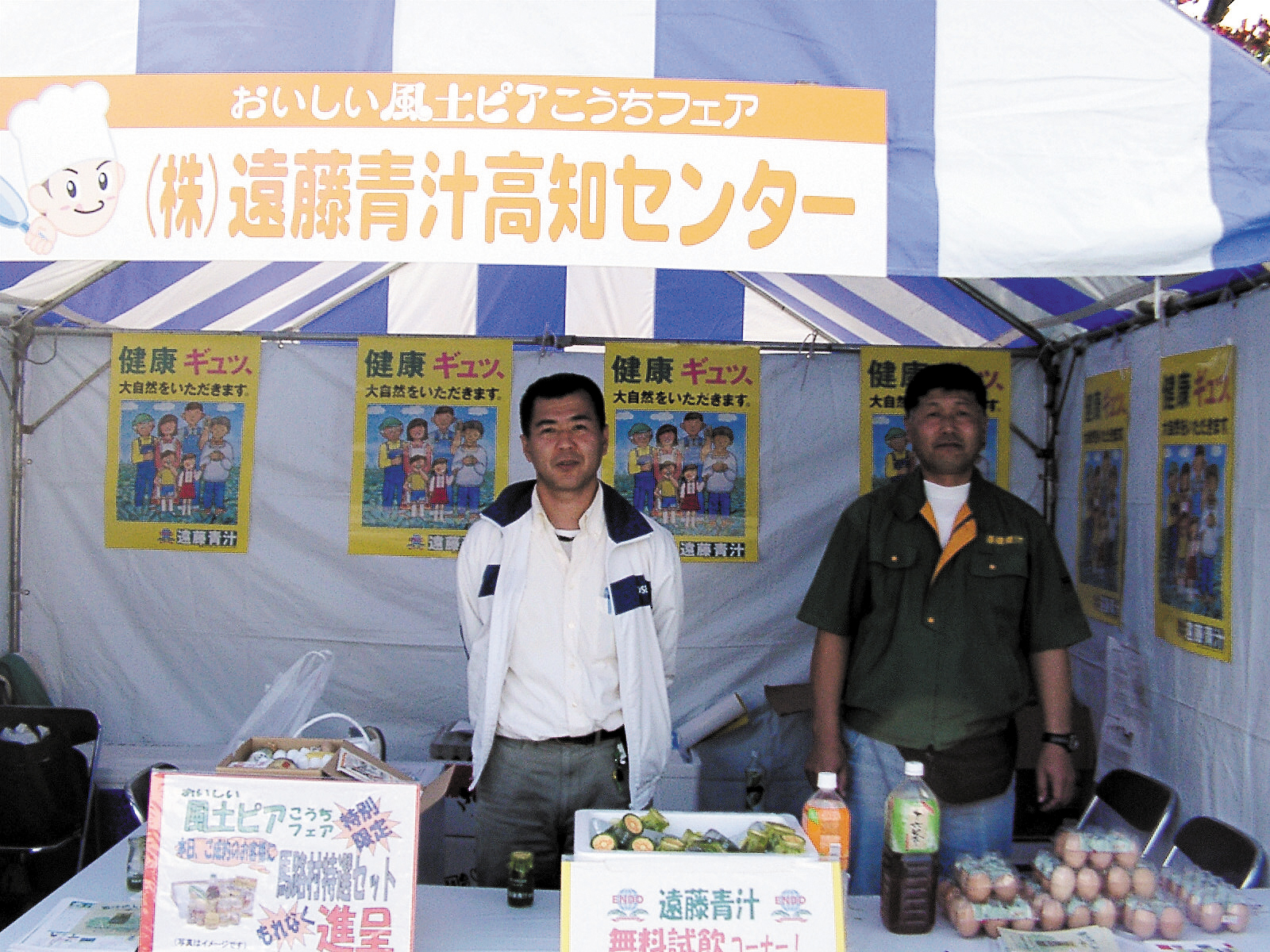 「牛乳もち投げ」、「ふれあい牧場」や「地産地消クイズラリー」など盛りだくさんのイベントで大勢の人が訪れ、遠藤青汁高知センターもこれに出店。たくさんのお客様に青汁を試飲していただきました。2日目はあいにくのお天気でしたが、1日目は晴天にめぐまれサンプルジュースをコップに入れるのが間に合わないくらいの大盛況。親子連れも多く、子供さんが意外に飲めると喜んでくださった方や高齢の方も多数足を止めて下さいました。ビタミンやカルシウムたっぷりの生の青汁を是非食卓に取り入れていただければと思います。